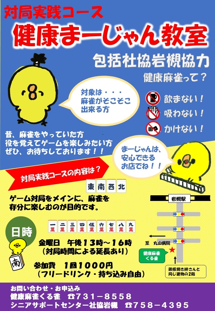 下記スケジュールで社協岩槻さん協力による麻雀教室を行っております。